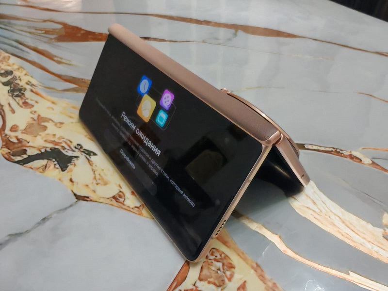 Толщина корпуса в сложенном виде всего 8,8 мм, а в разложенном – 4,2 мм. Добиться таких показателей удалось благодаря использованию лёгких материалов: титанового сплава, карбона и стекловолокна. Благодаря габаритам и закругленным граням смартфон комфортно держится в руке. С обратной стороны смартфона размещен – массивный блок камер. Отметим покрытие задней панели, которое изготовлено из аэрокосмического волокна.