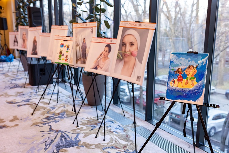В рамках мероприятия была организована выставочная зона с портретами женщин и рисунками детей с онкологическими диагнозами. Арт-работы юных участников проекта стали частью благотворительного аукциона. Все вырученные средства направились на развитие и внедрение инновационной технологии ранней диагностики Ophtascan.